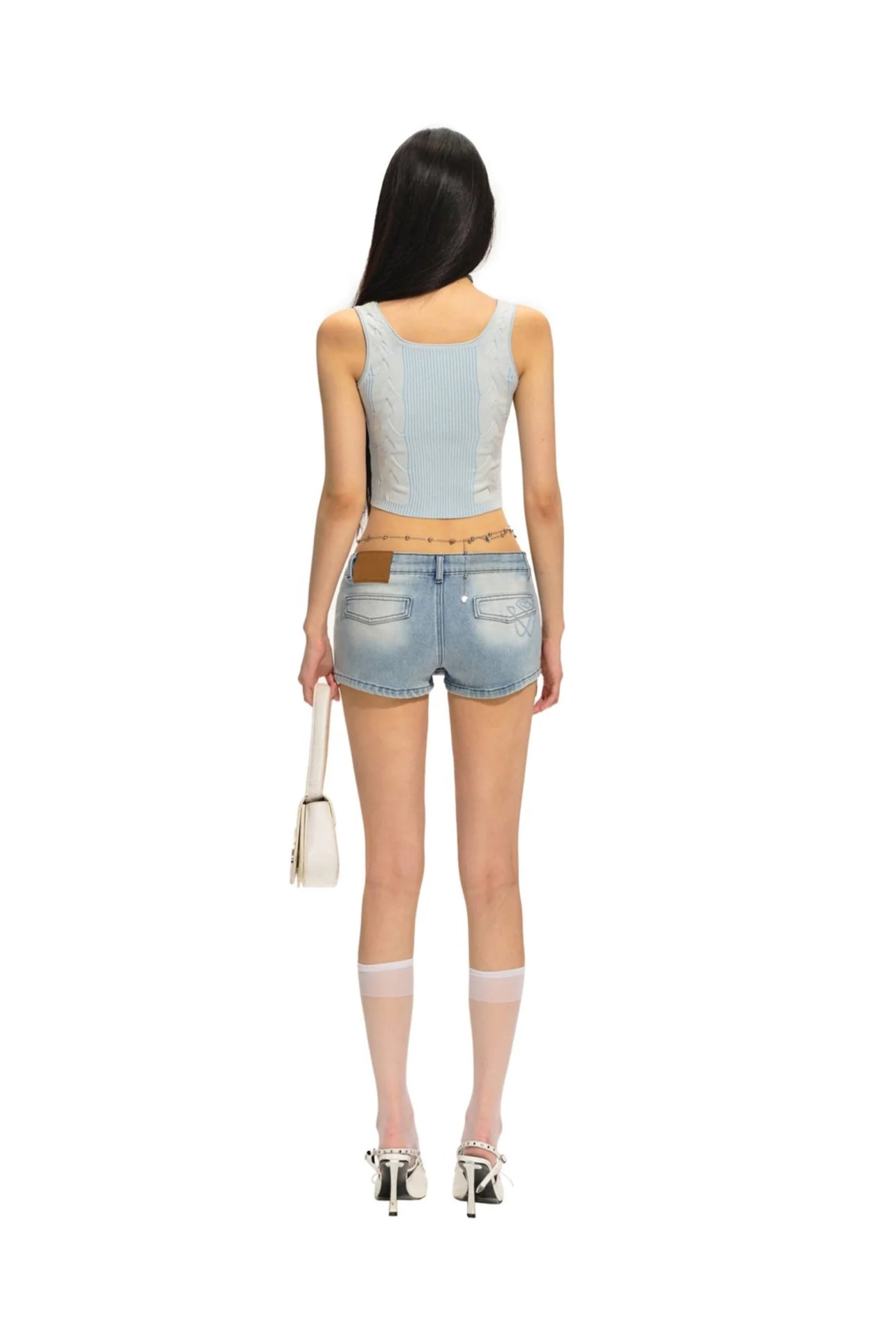 Cable Knit Vest with U-shaped Neckline, featuring a two-tone ribbed design. This fitted and stylish knit tank top exudes a trendy and chic vibe
