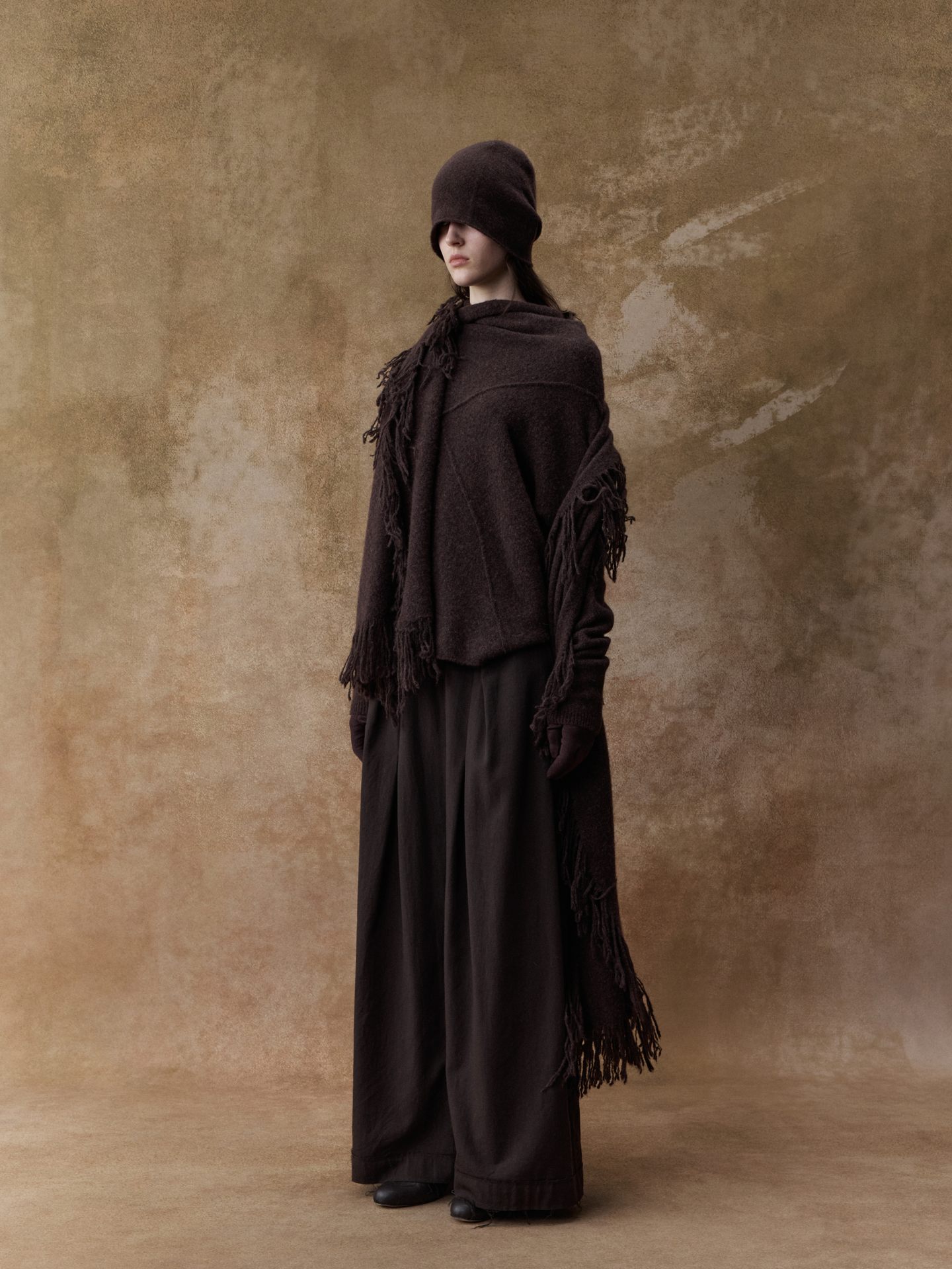 Elywood TAN DIAGONALLY PLEATED TROUSERS
