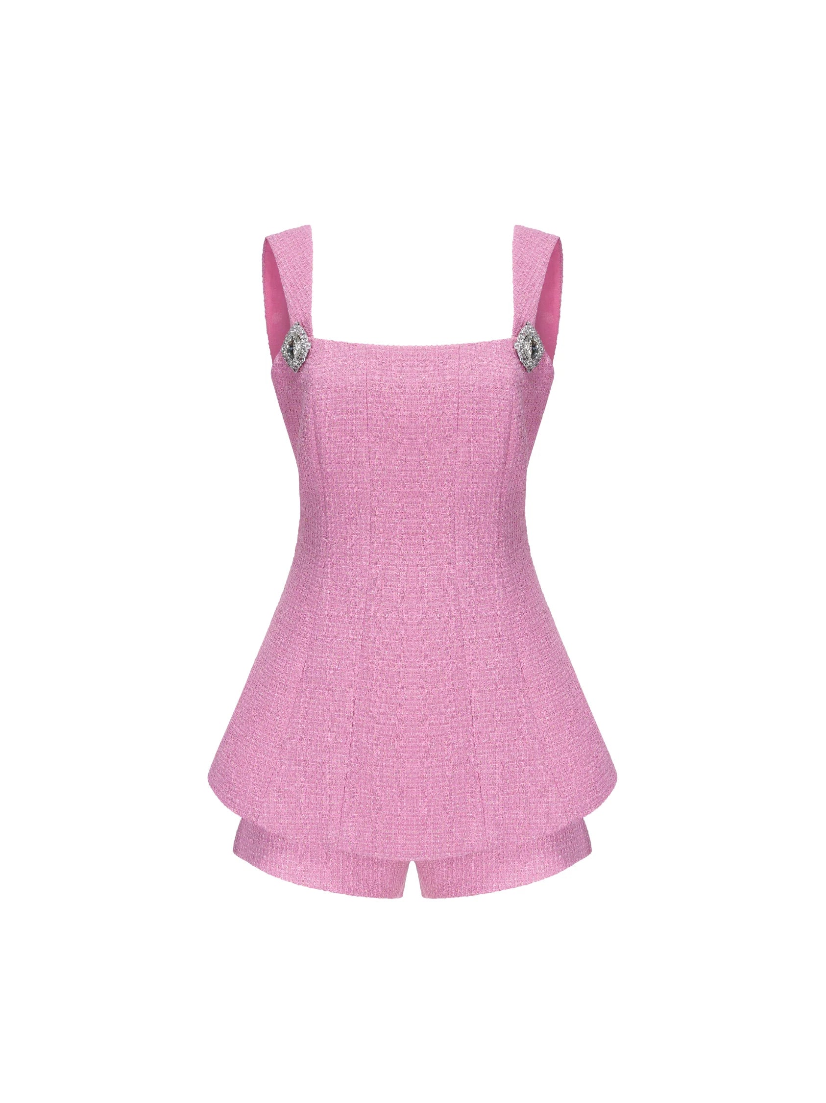 This beautiful, unique suspender top comes decorated in diamond buttons and double bows. It's unlike anything you have in your closet, and you'll be reaching for it again and again this season.