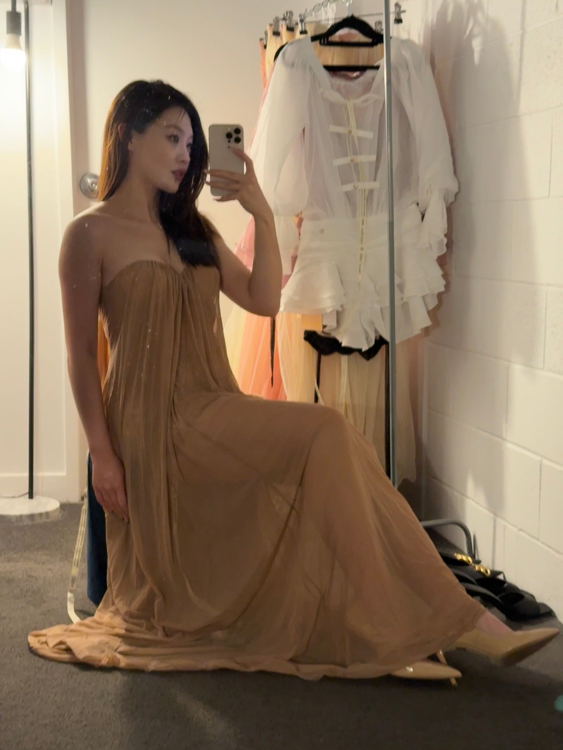 Sheer Luck Thea Strapless Mesh Backless Dress Brown