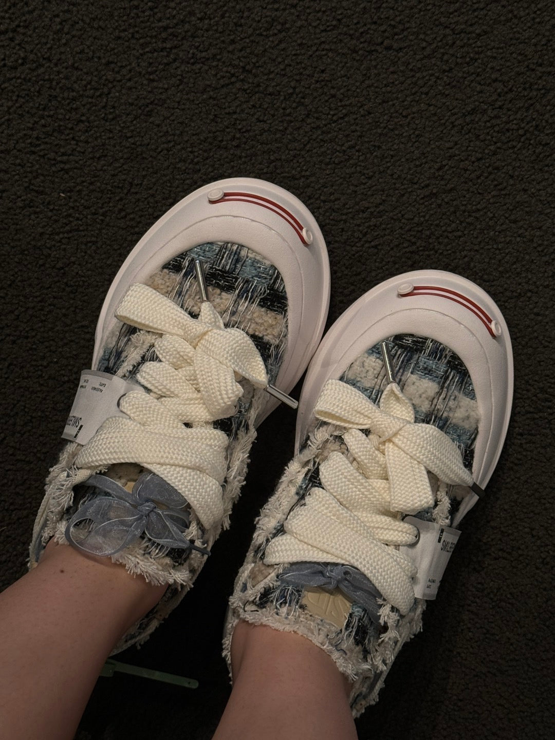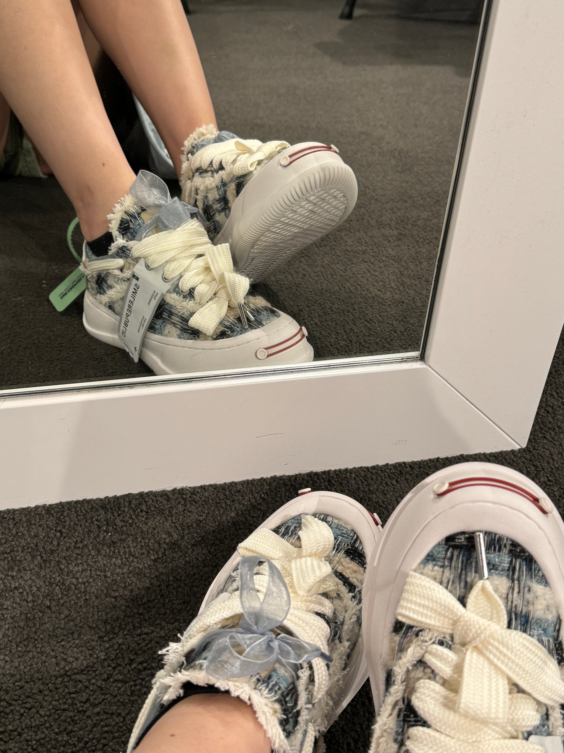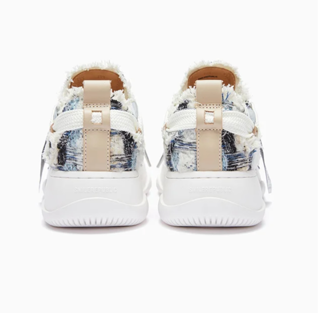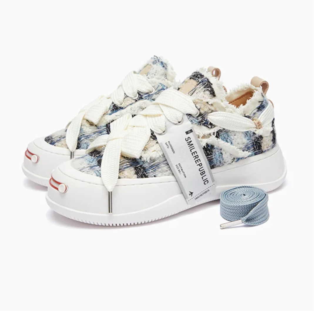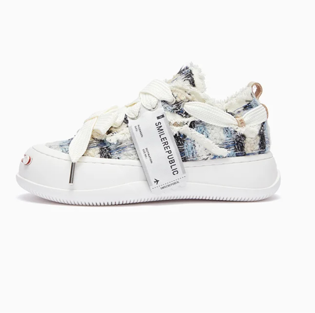 Smilerepublic Blue Black Woolen Low Top Platform Sneaker Canvas Shoes