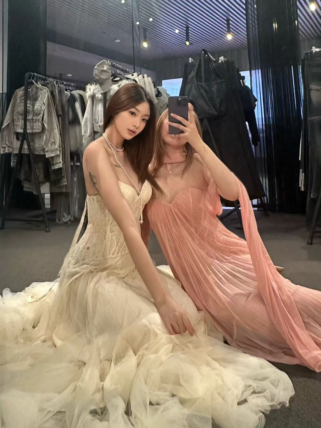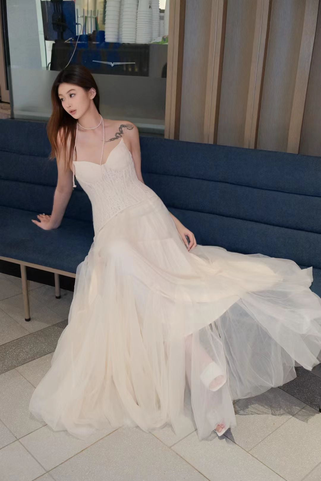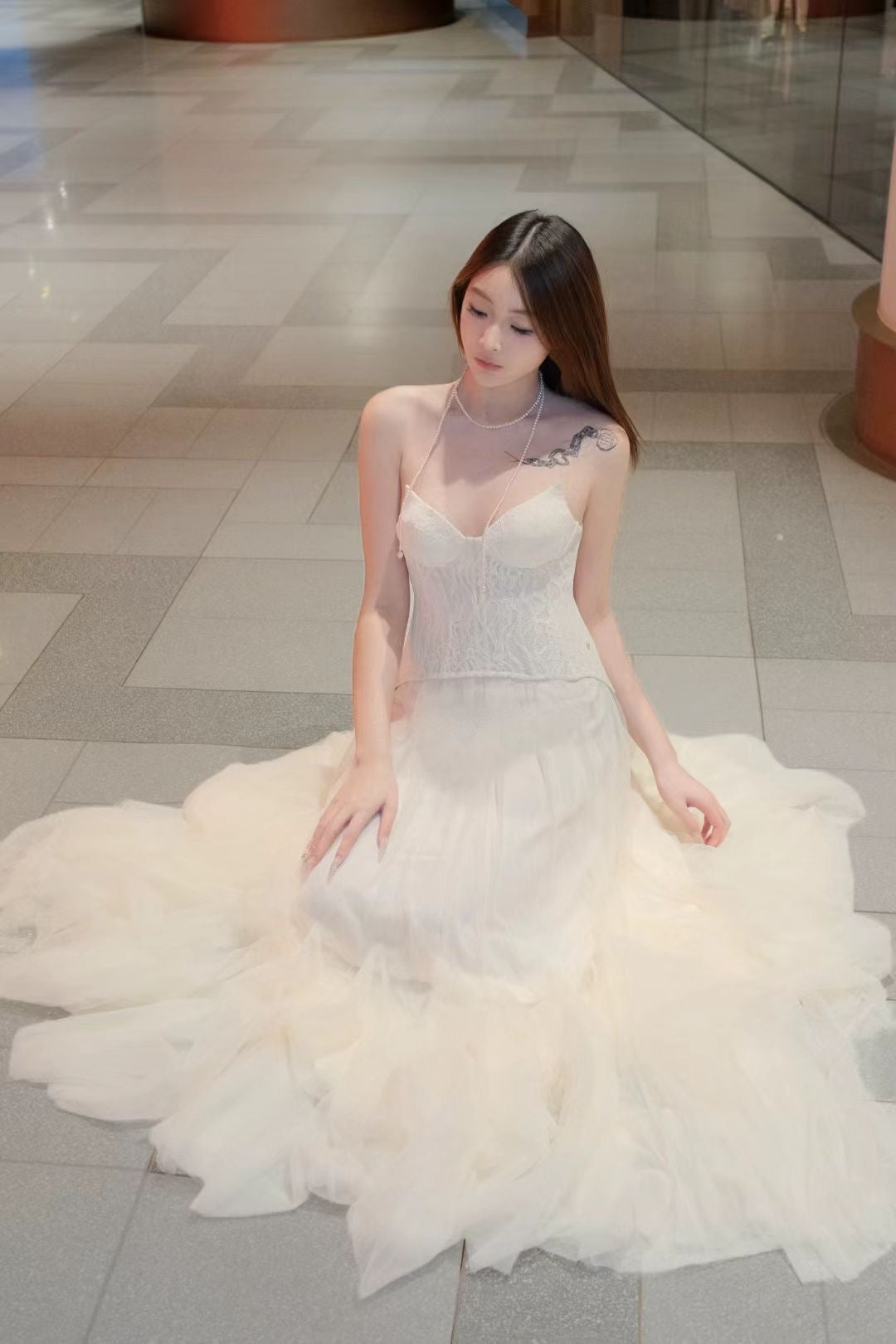 This exquisite gown combines delicate lace and a boned corset to accentuate the soft curves of femininity while offering excellent shaping. The layered tulle skirt creates a romantic and dreamy atmosphere, exuding elegance and sophistication in every detail. The full-skirt design enhances mobility with grace, perfect for any special occasion.