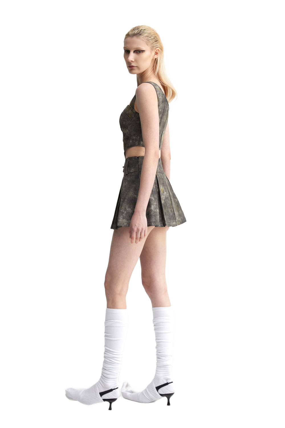 YJ1 DENIM ACID-WASH SKIRT IN GRAY